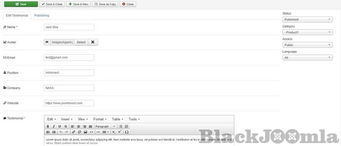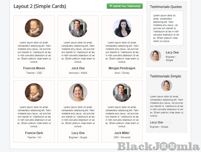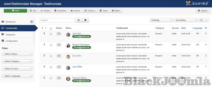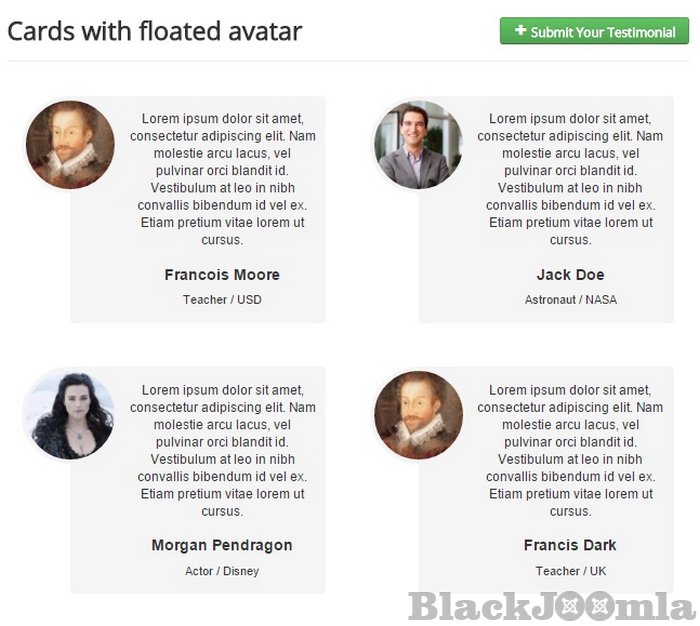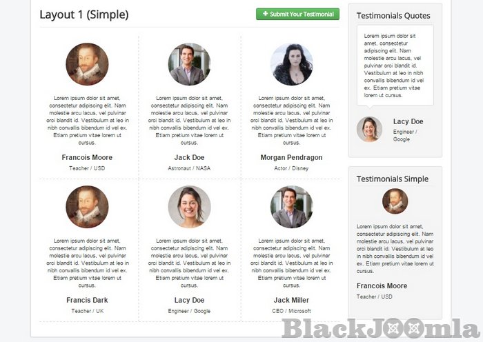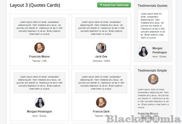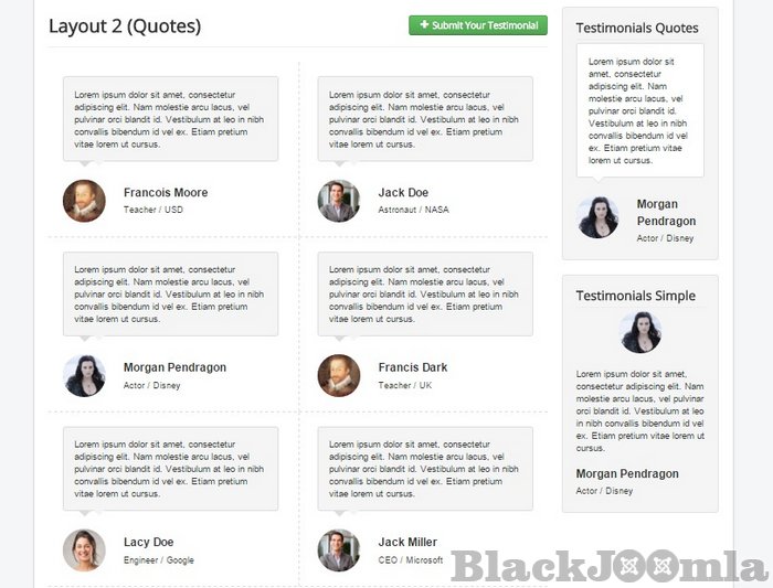 - Content plugin that let you display testimonial inside Joomla article using shortcode ex: {joomtestimonials id=xx}