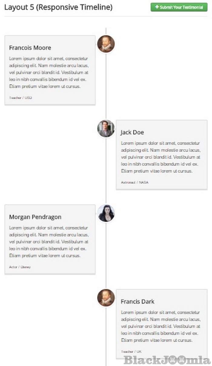 - Testimonials Module with slide feature, and many options to change style and layout (quote, timeline or as slide).