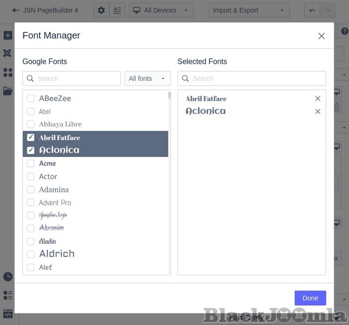 It’s totally easy for you in choosing a font among tons of Google font families in JSN PageBuilder 4. Our Joomla page builder allows you to see the font before selecting it so that you will save your time and effort.