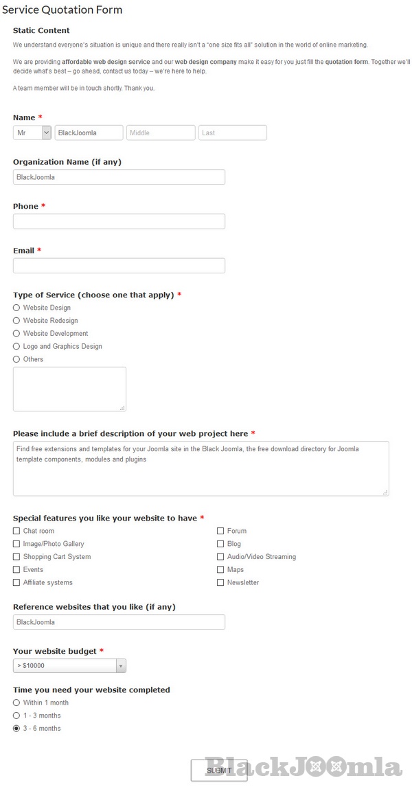 --- Present your form via menu items, in module positions, or even inside an article with a single click.