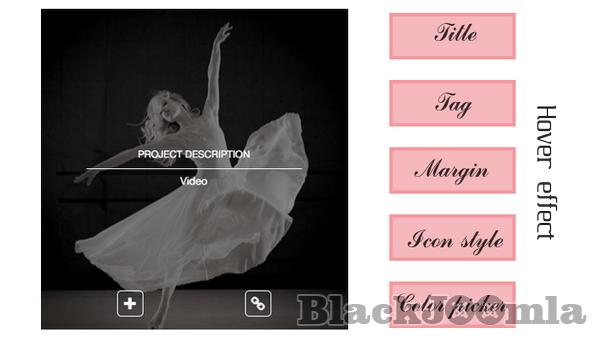 5 hover styles are availlable for you choose. You can show title, tag, margin item when you hover on the image. Color picker also provided so that you can freely style for your hover effect.