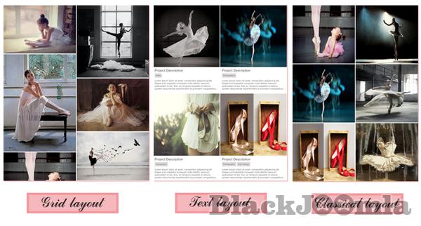 Text layout allow you to add title and a short description below your images. Grid and classical style are both included in text layout. Therefore, you can choose any style you like to display included description.