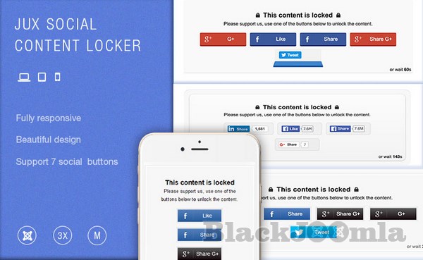 Social Content Locker get supports of 4 largest social networks that are Facebook, Twitter, LinkedIn and Google + and 7 social buttons: Facebook Like, Facebook Share, Twitter Tweet, Twitter Follow, Google +1, Google Share and LinkedIn Share.