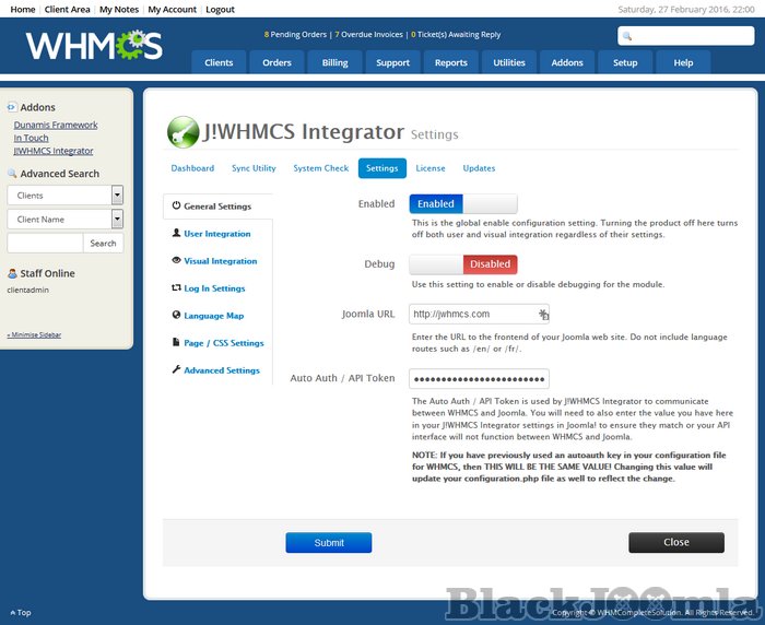With J!WHMCS Integrator, your WHMCS clients and Joomla users are bridged allowing you to customize your client's experience on your site. Your clients can log in anywhere on your site and be logged into both WHMCS and Joomla. Clients can change their profile in WHMCS and any updates are carried over to Joomla and vice versa.