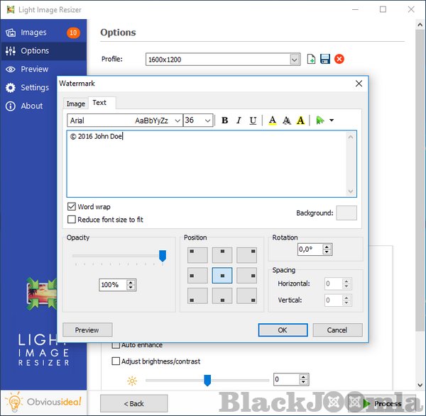 Add your own watermark to protect your work or add a copyright to photos with html-like text formatting and transparency support. Customize pictures by converting them to sepia or add a border. Use the live preview to see what the final result will look like before actually processing the image. The Obvious Idea Picture Resizer/Photo Resizer works on files, subfolders and folders, and supports RAW formats. With multi-core support integrated, you can convert images even faster. Launch the application easily from Windows shell explorer with a right click on the image or folder.