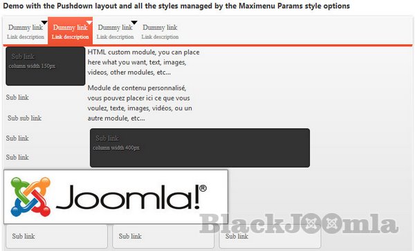 - CSS class, href attribute and column specific width with the plugin Maximenu_CK Params