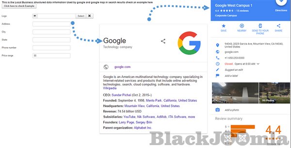 Add your company information details on Google Maps like rating & reviews, price, address, products...