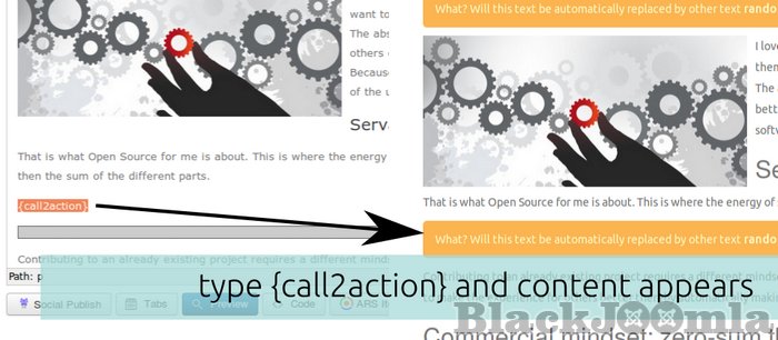 This Joomla! content plugin enables you to create Call2Actions and show them anywhere in your blog / article.