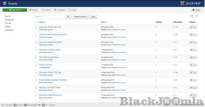 If you use Joomla, look no further. Ohanah ticks all the boxes. You have everything you need, from venue management to registration. Super cool!