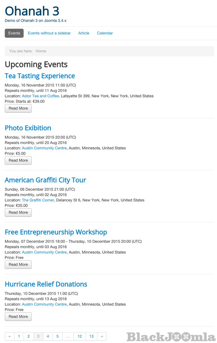 Use Event list to display events in the main area of your site, or display them in a module. Either way you get effortless control over the list with Layout options. -