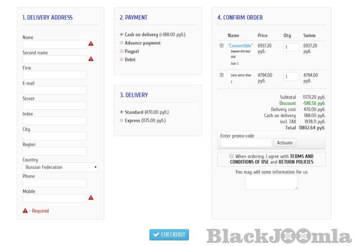 In the virtual store the same effect checkout (based on checkout). He simplified a bit in terms of the lack of expectations, but on the other hand is complicated by the need for more long and routine filling the fields and step by step instructions.