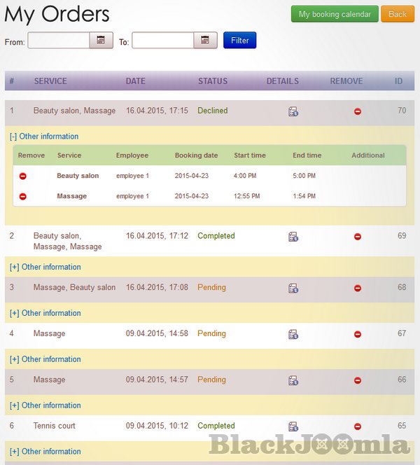 Easy to manage Orders list, Categories, Venues, Services(Appointment types) , Employees (Staff) and Custom fields