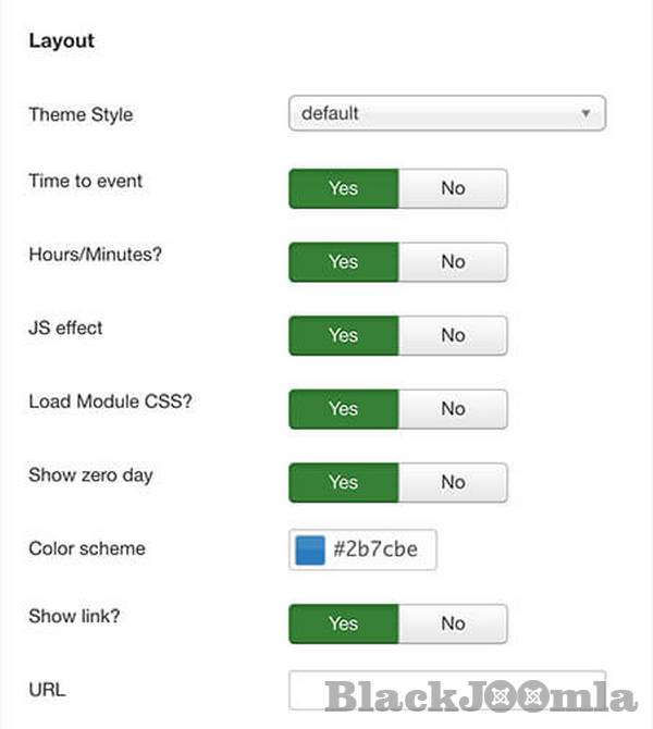You can display countdown clock on your Joomla site using one of the available themes and choosing a custom color. The Pro version comes with extra themes.