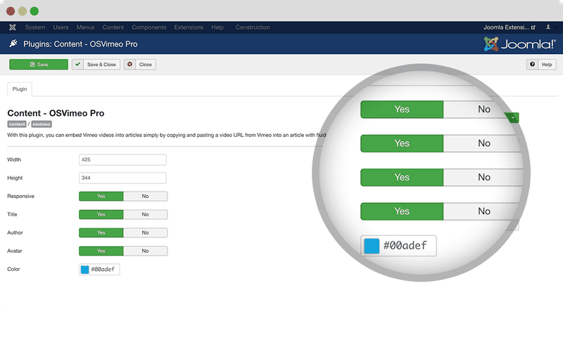 Easy-to-use Joomla Vimeo integration