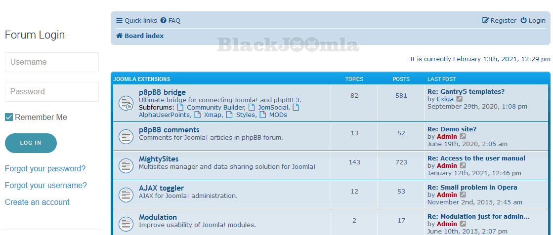 - Works in frameless mode (displays phpBB as usual Joomla! component inside your Joomla! template, special phpBB templates are required) and in standalone mode (any phpBB template can be used).
