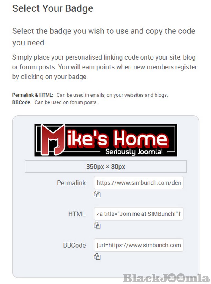 - Badges feature which allows your users to place personal badges on their blogs, forums and other websites to promote your site, and getting points in return.