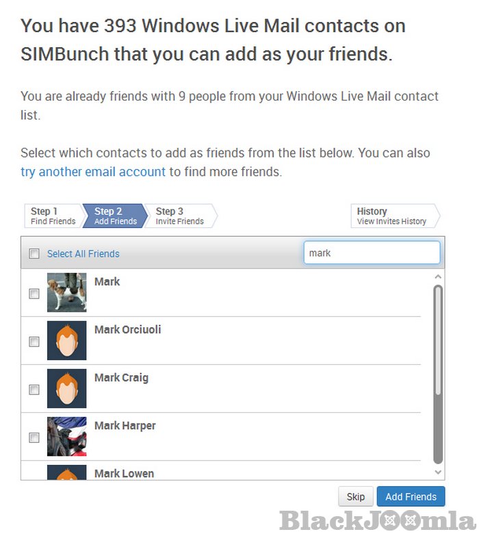 It uses OAuth 2.0, the industry standard for authenticating users on 3rd party services, to import contacts and send invites via six fully supported services: Windows Live Hotmail, Google, Yahoo!, Facebook, Twitter, and LinkedIn. It is also integrated with OpenInviter to provide additional email services, and supports CSV import and user manual entry.