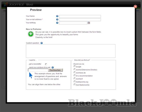 Pro-Forms is a very easy to use Joomla component for creating forms with extensive professional functions.