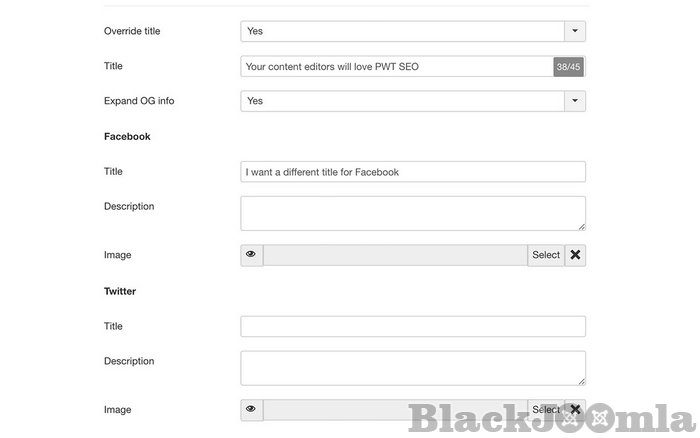 No need to go to another location in the Joomla site to change the page title. Simply change it from the SEO Score tab in the backend. Easily target content by setting platform specific titles and descriptions.