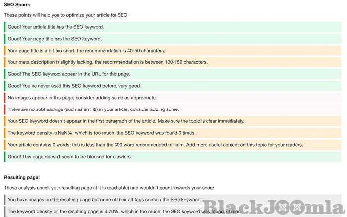 SEO checks for Joomla articles
