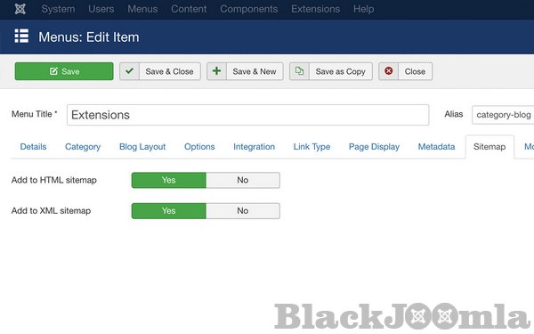 When adding or editing a menu-item you can directly configure if the page should be displayed in the HTML Sitemap and XML Sitemap. For menu items that display a category you can choose to include all articles of the category as well.