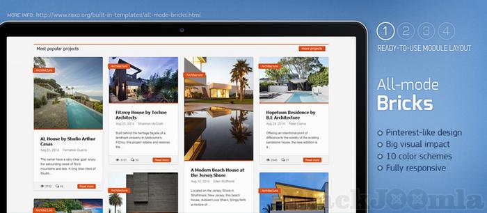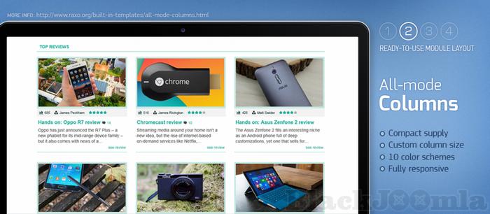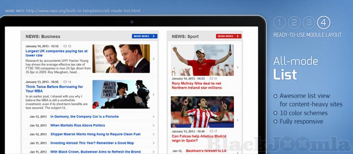 This multipurpose module easily replaces a bunch of extensions like latest news, popular articles, random news, display news, frontpage news etc. No more need for many strictly specialized Joomla content modules – RAXO All-mode PRO takes care of it all. Save your time and efforts and become more efficient.