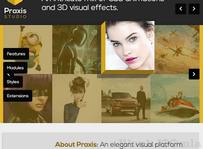 — Multiple layout options: Features, Lists, Headlines, Mosaic, Strips, Tabs, Grids, Tables, Sliders, and Quotes.
