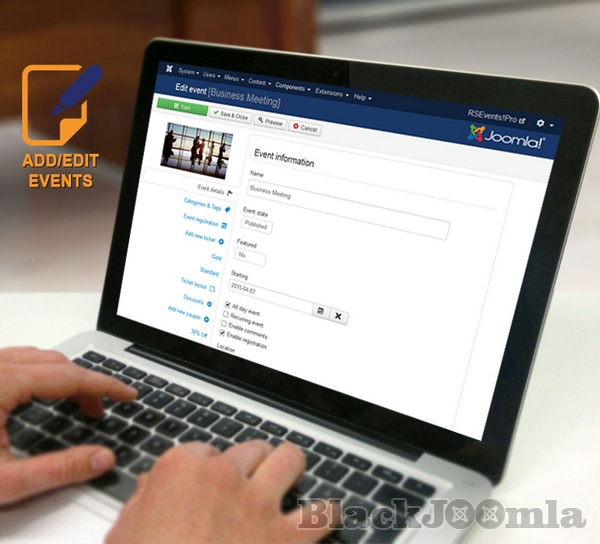 RSMediaGallery! - Use the friendly interface of our gallery management extension to manage your event's gallery.