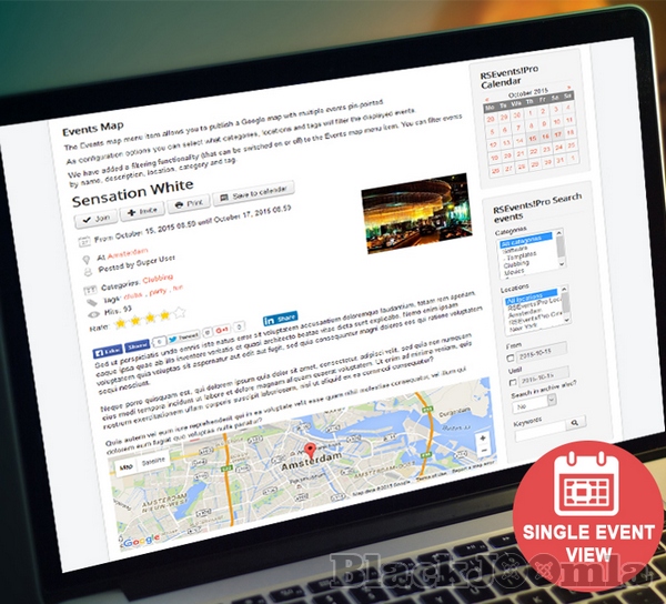 Social sharing - allow people to rate the event, like it on Facebook, share it on Twitter, Google+ and LinkedIn.