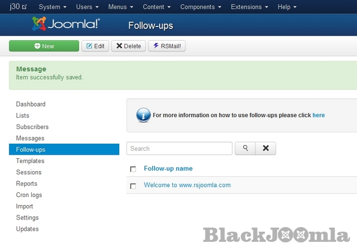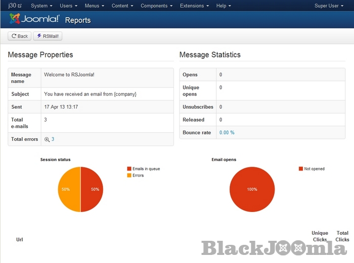 Email templates, spam tests, bounce handling, scheduled sending campaigns, fallow-ups, statistics and link tracking are just some of the built in features of RSMail!. The email content can be automatically imported from third party extensions, such as: Joomla! articles, K2, RSBlog!, RSEvents!Pro, SobiPro, Virtuemart, RSFiles!