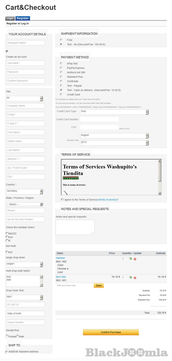 - hundreds of optional features which you would expect at the checkout (Google Adwords Conversion tracking, Free shipping only to one country, Free shipping as an shipping option, Checkout as link to a subscribtion, Disable a specific payment for a selected shipping, Disable a specific shipping per payment), zero shipping for digital products or gift certificates