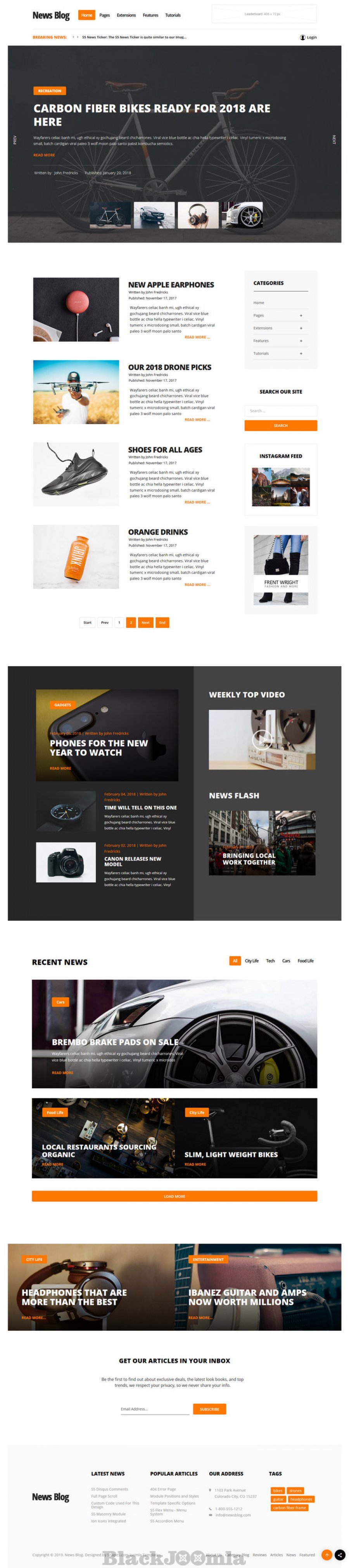 We've set the Image and Content Fader to article mode so it automatically pulls in all your articles in a specific category. But we've also added some features to article mode to display the category, author and publish date of each article if you wish. The S5 News Display 2 module also had a minor update so it now outputs the author and article publish date. The design features our normal theme specific addons like a highlight color options, uppercase and lowercase options and also the ability to hide the first menu item. Be sure to check out the demo to see all the features included.