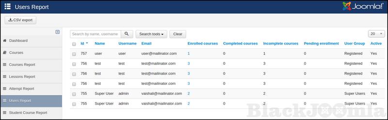 Improved user report with Joomla user group filters