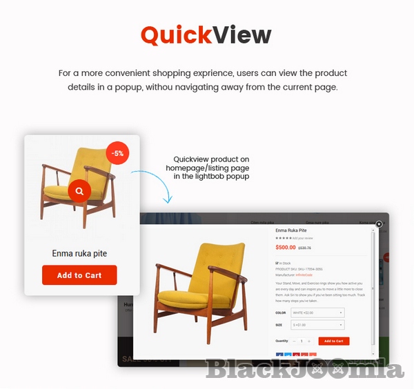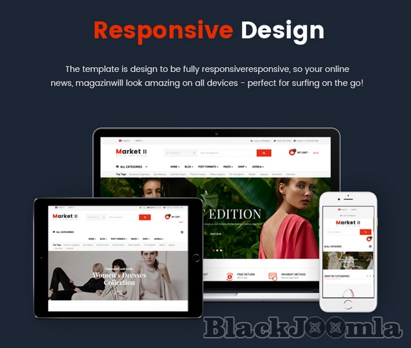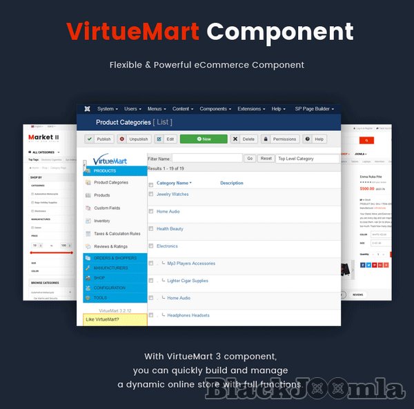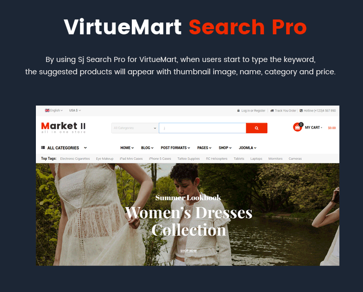 Furthermore, Sj Market II is powered with VirtueMart 3 component along with lots of advanced eCommerce features and functions such as: Mega Menu, Drag & Drop Builder, Ajax Filter for VirtueMart, Mini Cart Pro, Product Quickview, RTL language, 65+ Useful ShortCodes built-in..... You can build an eCommerce website just in few minutes without much coding knowledge.