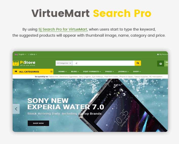 Sj PiStore is integrated with Powerful VirtueMart 3 Component which allows you freely show all your products in a clean way. The responsive theme comes with lots of functional extensions and trending features: Helix3 Framework which includes Bootstrap & LESS, mega menu and off-canvas menu, multi-languages, AJAX cart, Quickview, 65+ Useful Shortcodes, Ajax Filter for VirtueMart and much more…