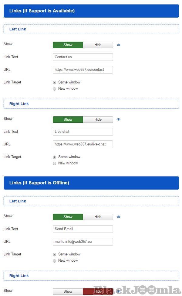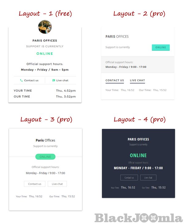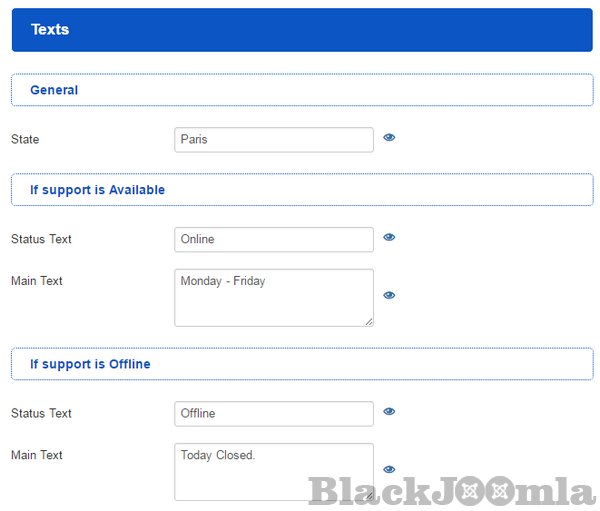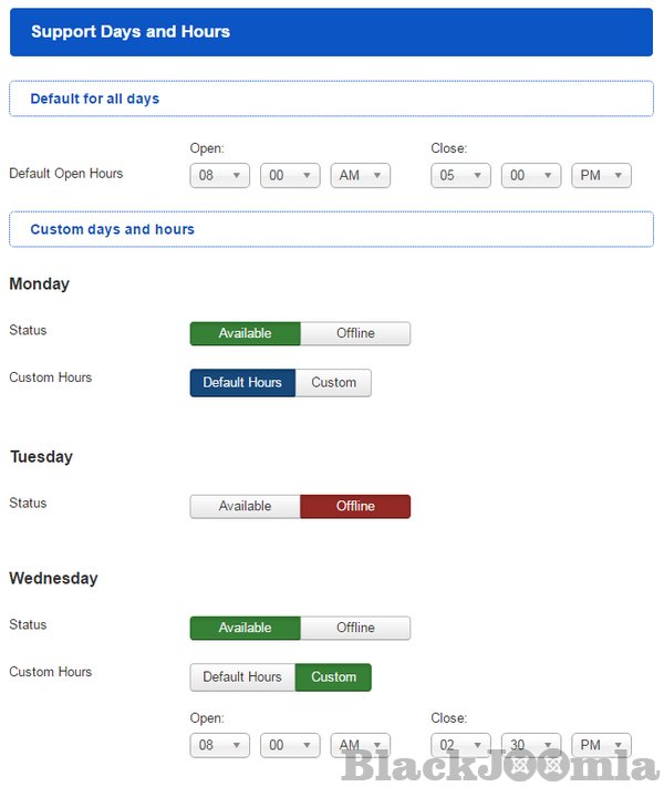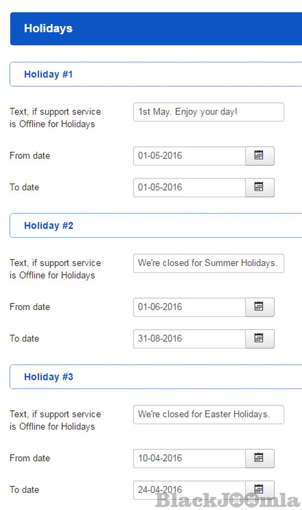 - Holidays (Set Holidays. In a holiday the support is offline and a holiday message will be displayed).
