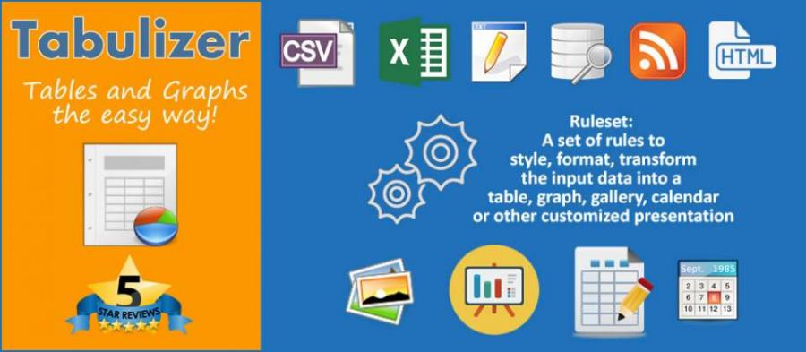 The resulting tables or graphs can be either static that can be edited using the standard Joomla editor or dynamic i.e. linked to an external data source that when gets updated the associated table/graph gets updated as well. What makes Tabulizer really unique is its versatility and extensibility. Instead of having a fixed set of styling presets, it uses the concept of rules where each rule corresponds to a different feature. By combining multiple rules you can have an unlimited number of end results. These rules do not affect only styling aspects, but they can transform and format the table elements in many ways (e.g. calculations, replacements, text formats, row/column insertion and removal, etc).