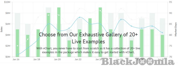 Web Applications: - Nothing beats visualization to show us what we need to know at a glance. vCharts makes it easy to show data visually and beautifully (with pie charts, bar graphs, or area charts etc.) in many ways like which users have the best reputation, which products sell best, or which topics are most active.