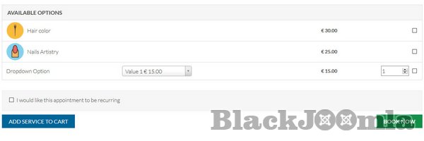 - Options management: add extra services that the users can reserve online with additional costs and durations