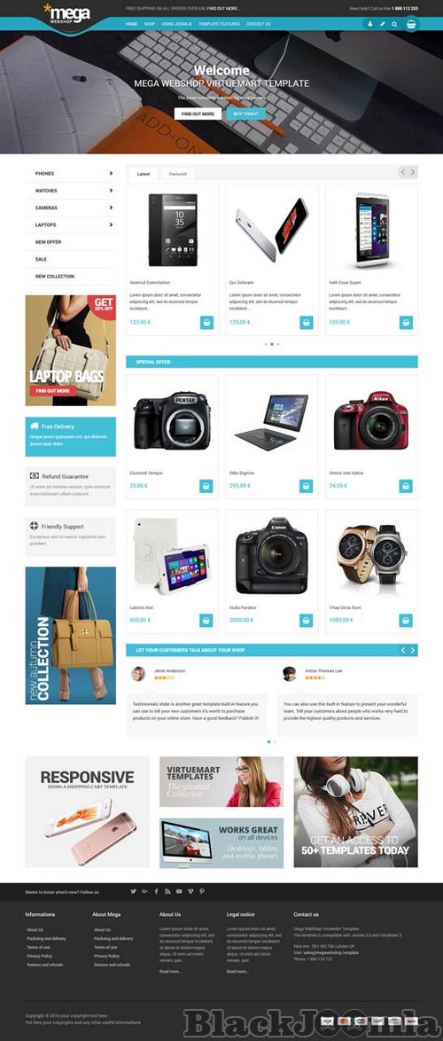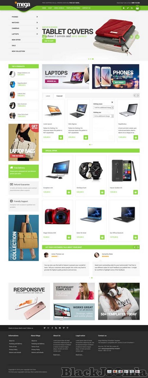 Mega web shop is a fully responsive Joomla template that adpats to all screen sizes to give your website visitors the best mobile friendly shopping experience at your website.