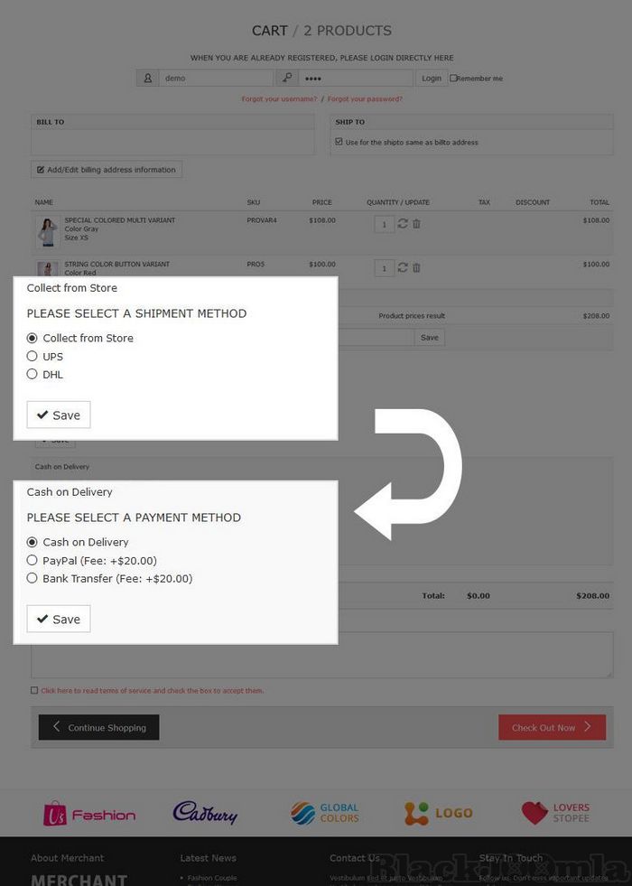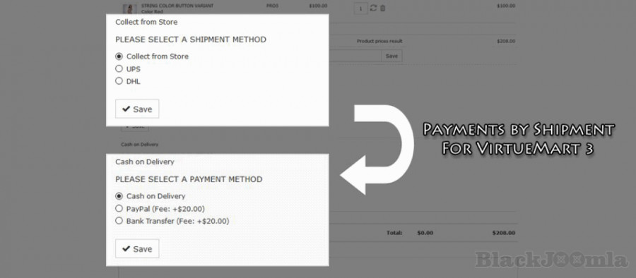 - Works with both standard VirtueMart checkout system and with VP One Page Checkout.
