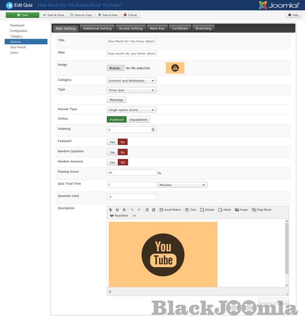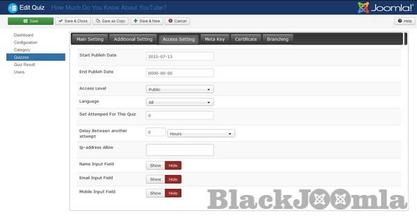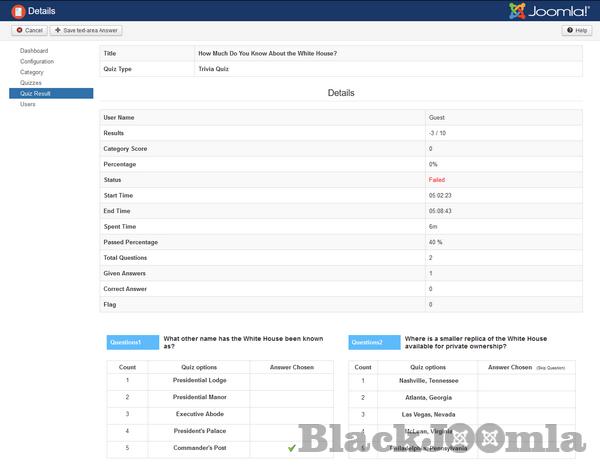 It also allows to display created Quizzes List on your JomSocial profile as well Community Builder profile.