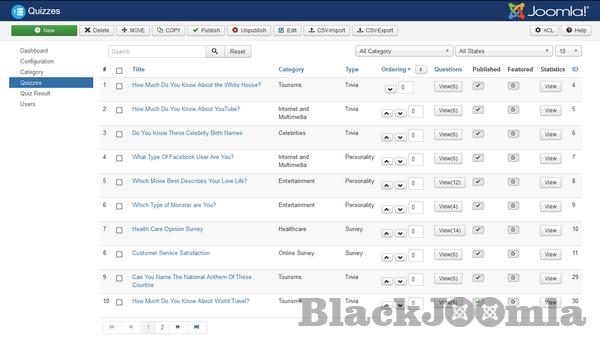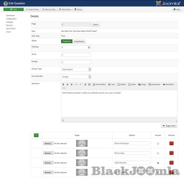 vQuiz package contains 1 component, 8 modules and 5 Plugins