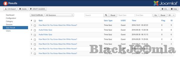vQuiz lets to track all quiz results played by users e.g. start time, end time, score, flag, status etc.