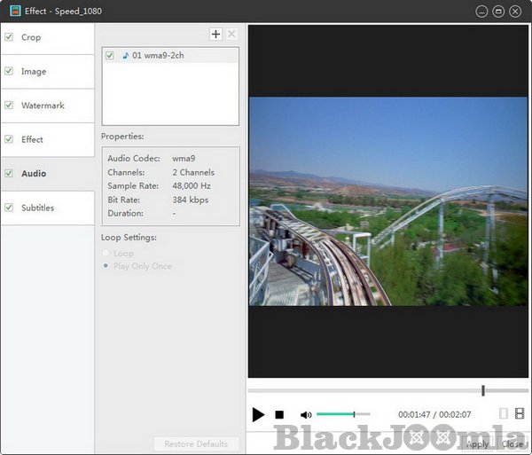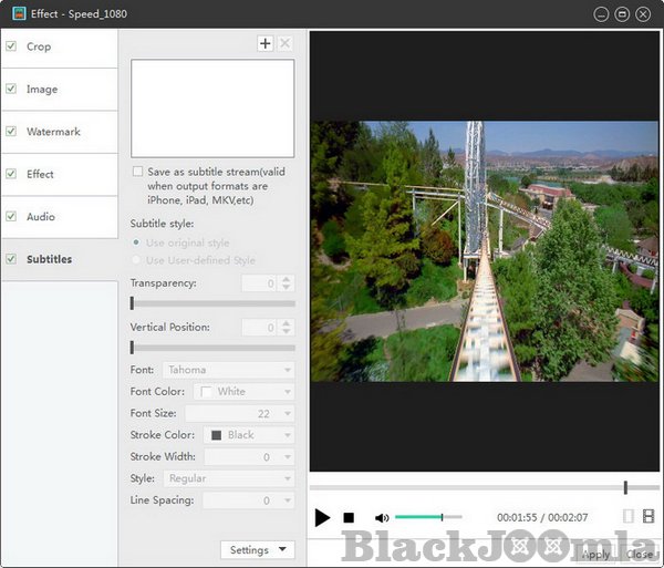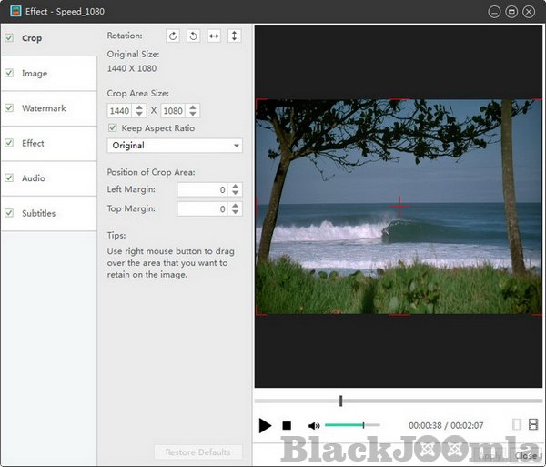 Crop the picture frame, adjust video brightness/saturation/contrast. Add artistic effects, and personalize your video with picture and text watermarks.