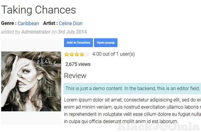 - Users can comment on genres, artists and albums. Support for Facebook, JComments & Komento commenting plugins.